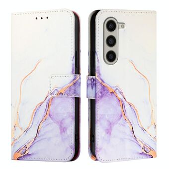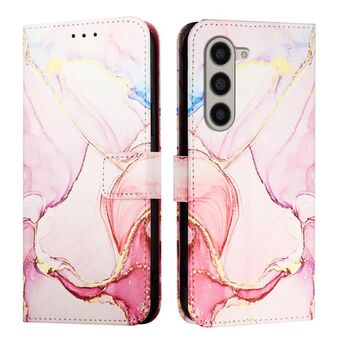 For Samsung Galaxy Z Fold6 PT003 Marble Pattern Flip Leather Phone Case(Pink Purple Gold)