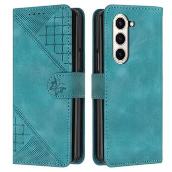For Samsung Galaxy Z Fold6 YX0080 Grid Butterfly Embossed Pattern Flip Leather Phone Case with Lanyard(Light Blue)