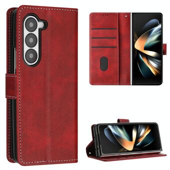 For Samsung Galaxy Z Fold6 Stitching Calf Texture Buckle Folding Leather Phone Case(Purple)
