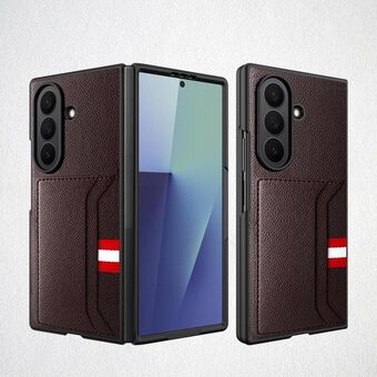 For Samsung Galaxy Z Fold7 5G Integrated Webbing Card Slot Litchi Skin Pasting Phone Case(Brown)