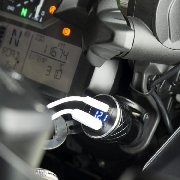 German EU Plug Special Motorcycle Elbow Charger Dual USB Voltmeter 4.2A Charger, Shell Color:Black(Red Light)