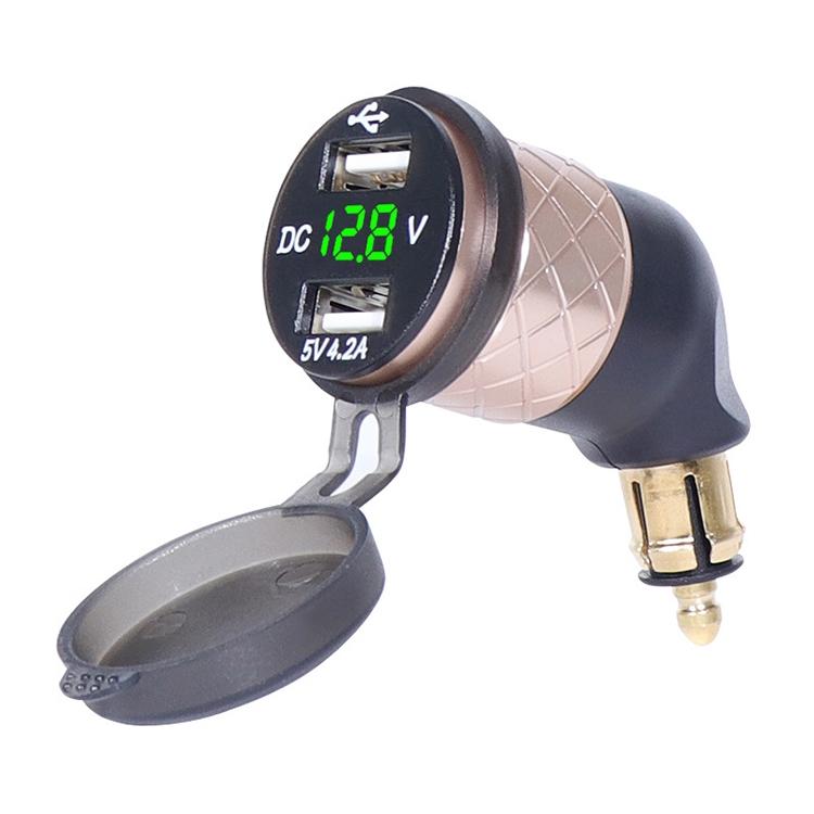 German EU Plug Special Motorcycle Elbow Charger Dual USB Voltmeter 4.2A Charger, Shell Color:Gold(Green Light)
