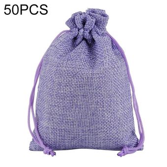50 PCS Multi size Linen Jute Drawstring Gift Bags Sacks Wedding Birthday Party Favors Drawstring Gift Bags, Size:9x12cm(Purple)