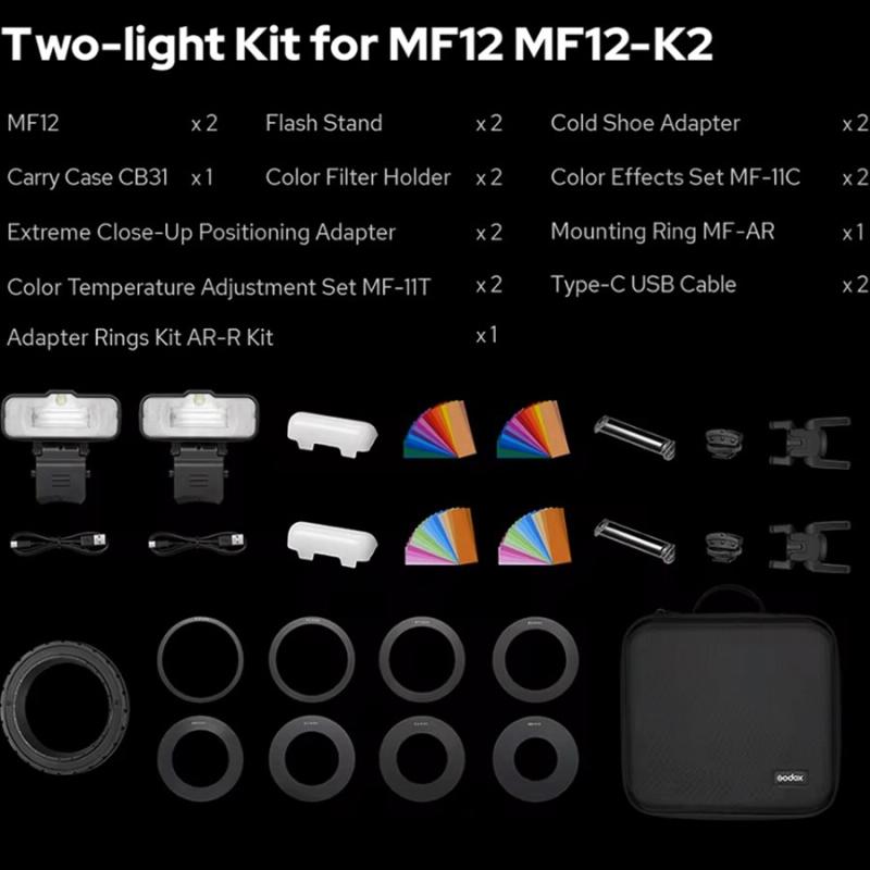 Godox MF12-K2 Macro Flash 2-Light Kit 2.4 GHz Wireless Control Light (Black) (Godox)