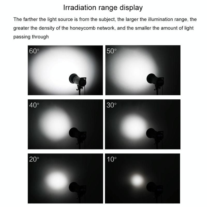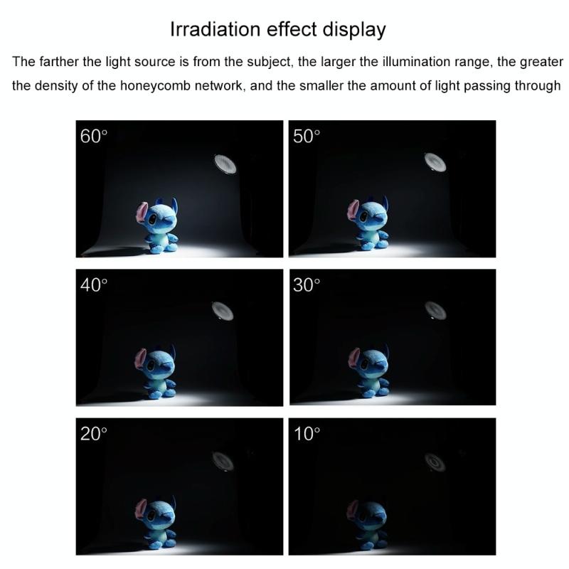 6. 6 kinds of aperture sizes, the larger the density of the honeycomb network, the smaller the irradiation range and the smaller the amount of light passing through