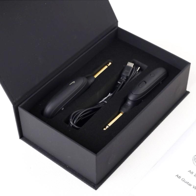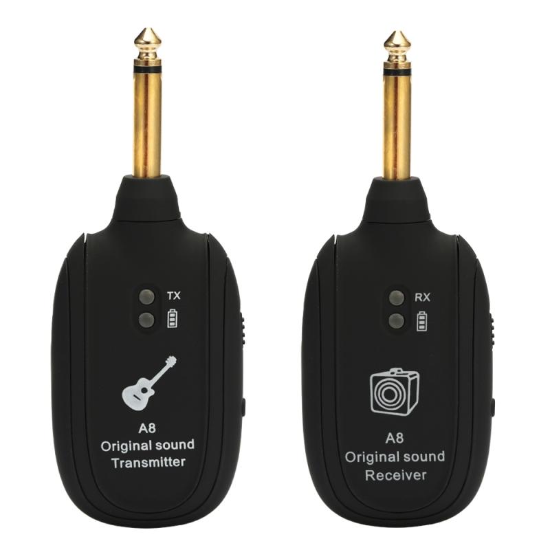 Wireless transmitters and receivers can be used for electroacoustic instruments such as guitars, bass, violins, and the like.