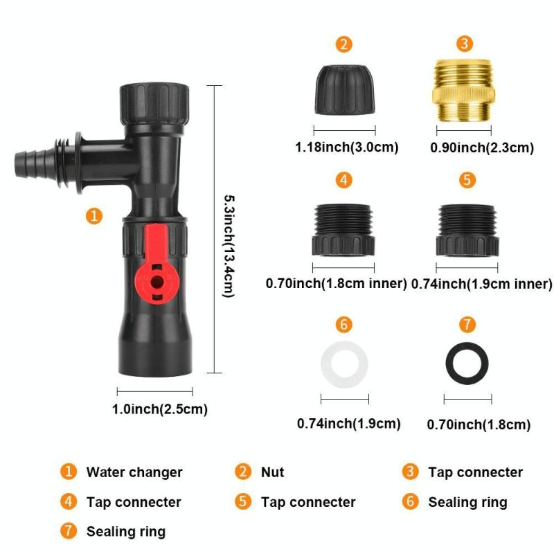 3. Packing list: water changer x1, nut x1, faucet connector x3, sealing ring x2