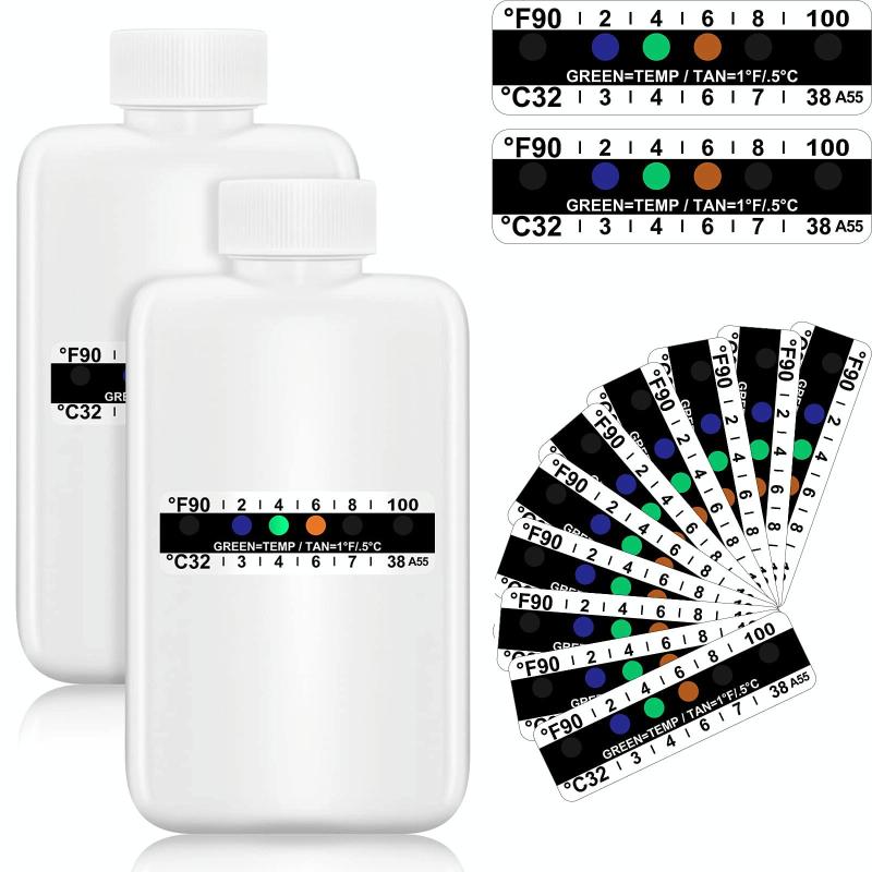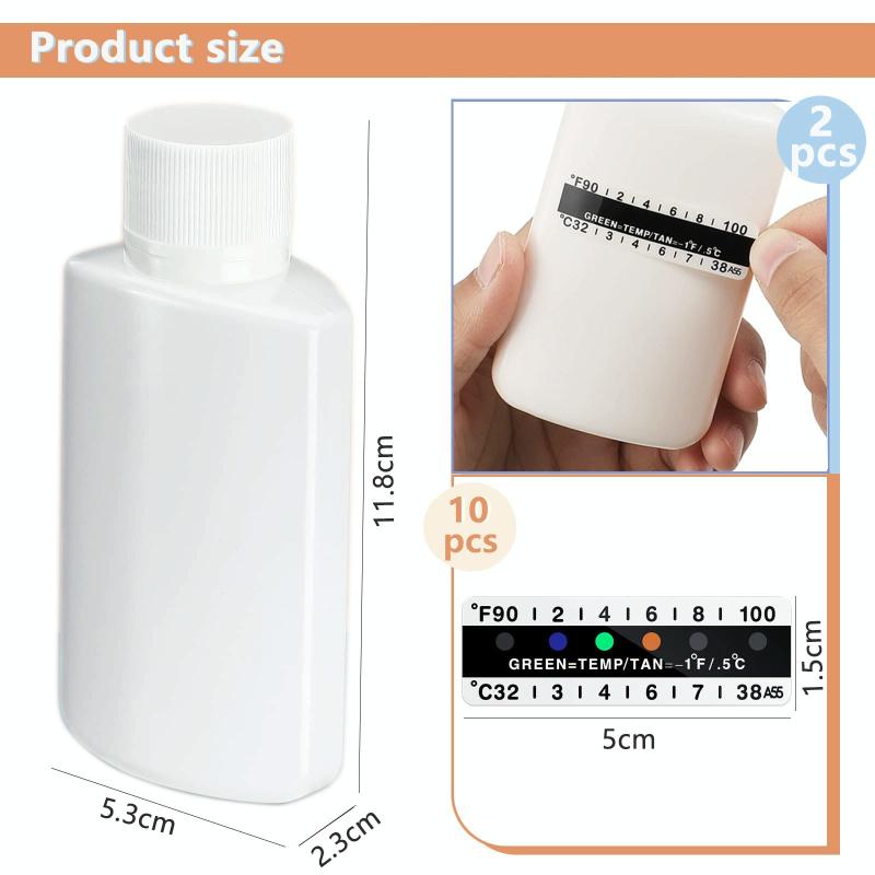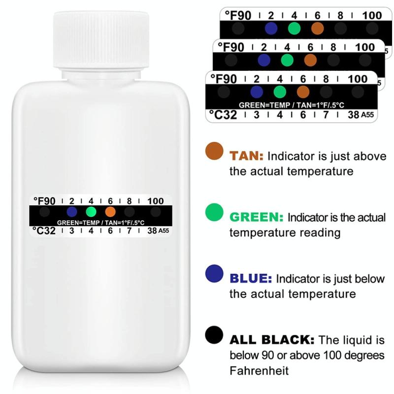 7. The temperature bar can measure the temperature from 32°C to 38°C, just stick the temperature test paper on the side of the bottle, wait for 20 seconds, different color circles will appear according to the temperature, which is convenient for measurement and observation.