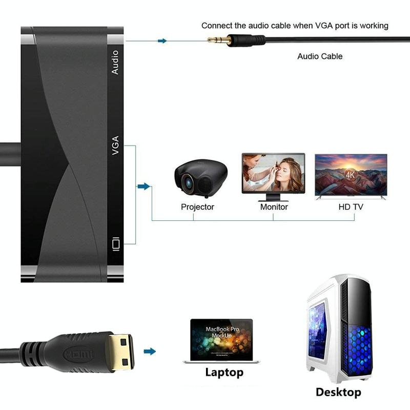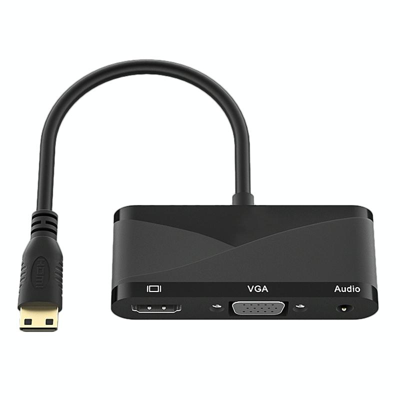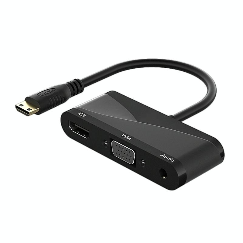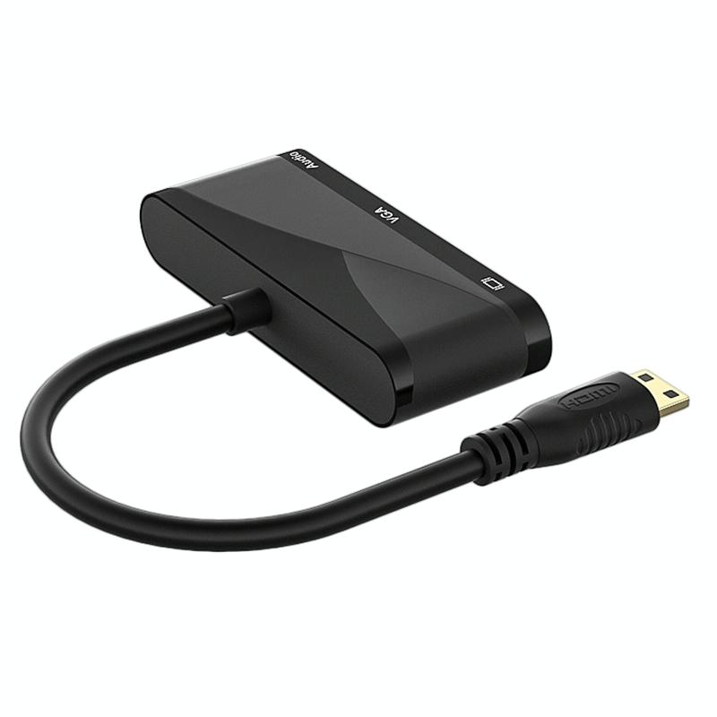 2. Used to connect host content with mini HDMI interface to a monitor with HDMI/VGA/3.5mm audio interface