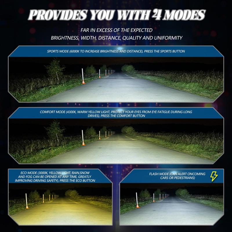 3. It is composed of 6 high-efficiency 3570 two-color LED chips with a service life of up to 50,000 hours, providing extremely bright white light, which helps to clearly see signs and obstacles in advance.