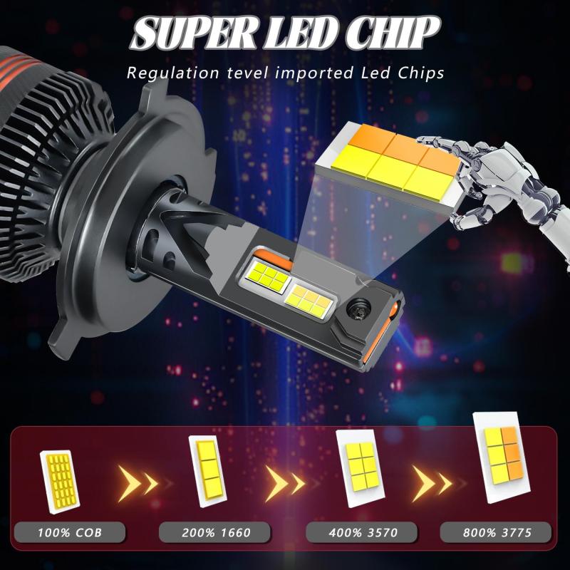H4 2pcs/Pack 60W 8000LM 6000K Three Color Remote Control Car LED Headlight Bulb
