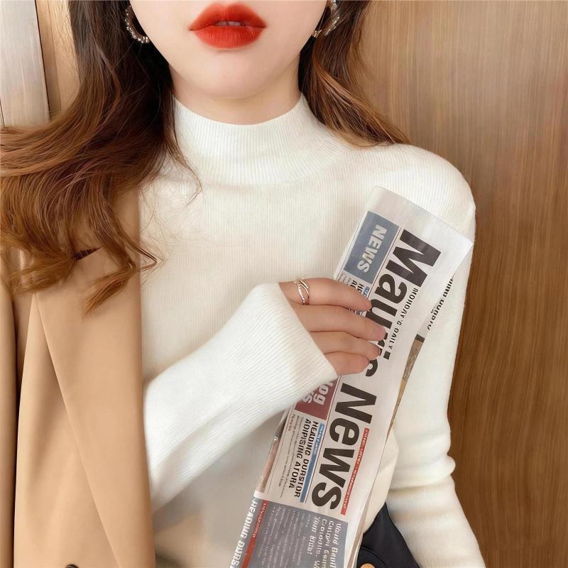 Half-Neck Collar Knitted Sweater Slim-Fit Long-Sleeved Inner Layer Top, Size: XL(White)