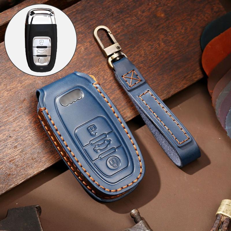 Hallmo Car Cowhide Leather Key Protective Cover Key Case for Audi A6L / A8L / A4 / A7 / A5 B Style(Blue) (Hallmo)