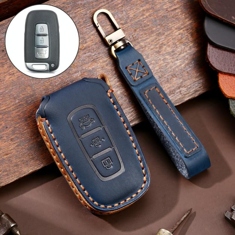 Hallmo Car Cowhide Leather Key Protective Cover Key Case for KIA K2 / K3 / K5 3-button(Blue) (Hallmo)