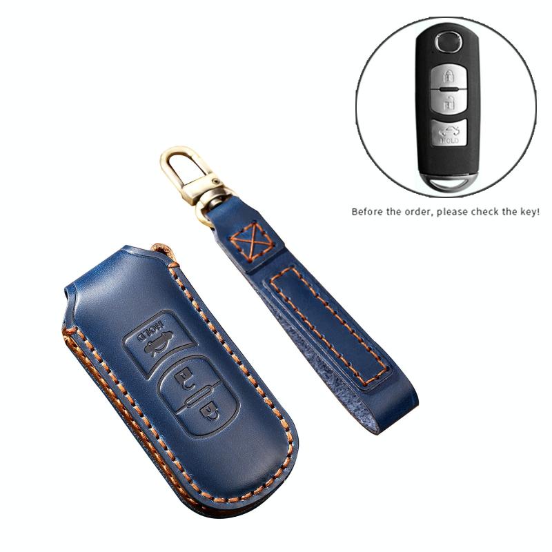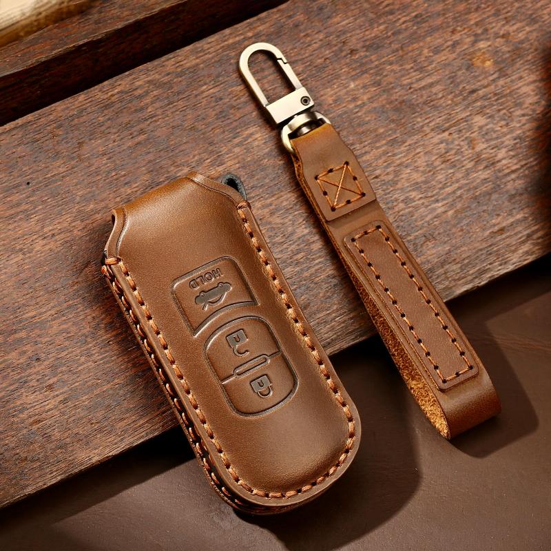 Hallmo Car Cowhide Leather Key Protective Cover Key Case for Mazda Axela 3-button(Brown) (Hallmo)