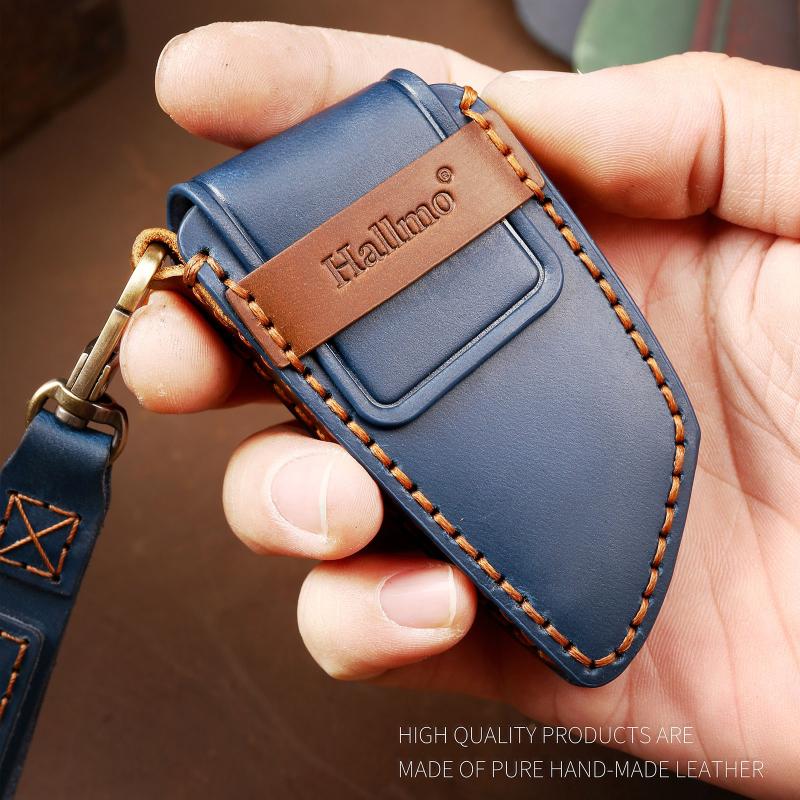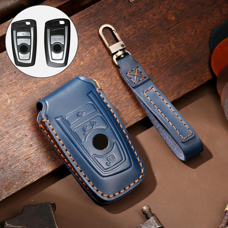Hallmo Car Cowhide Leather Key Protective Cover Key Case for Old BMW(Blue) (Hallmo)