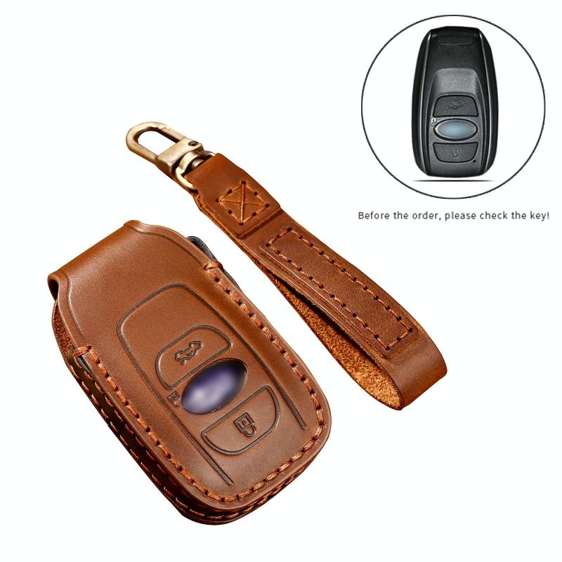 Hallmo Car Cowhide Leather Key Protective Cover Key Case for Subaru Forester(Black) (Hallmo)