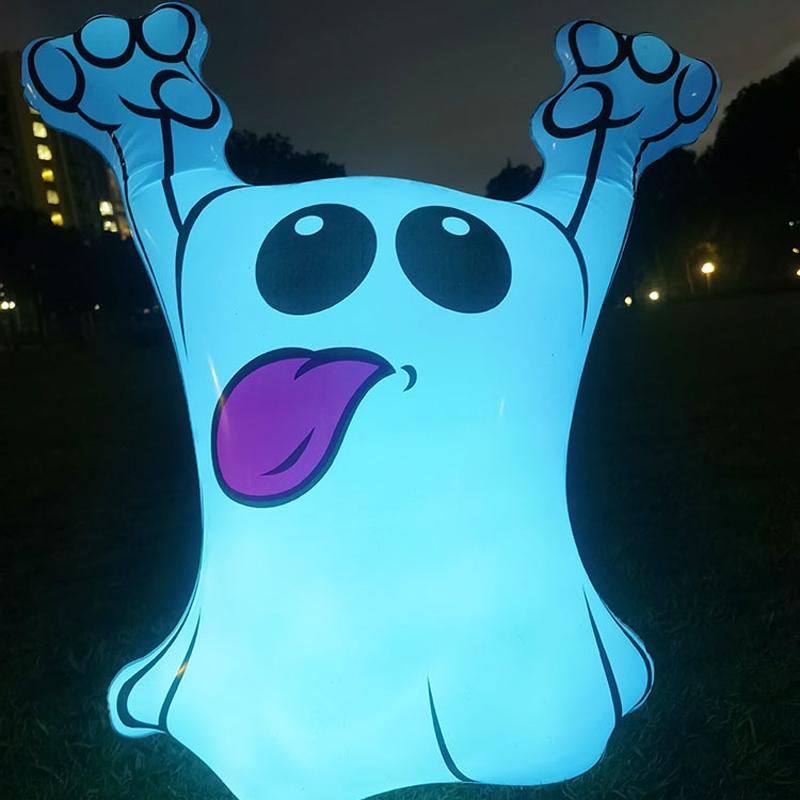 2. Dimensions: The inflated luminous ghost is 72cm high, 65cm wide and 35cm thick, the luminous skull is 55cm high, 42cm wide and 42cm thick when inflated, the luminous eyeball is inflated and the diameter is 40cm, the luminous pumpkin is inflated and the diameter is 40cm, pumpkin After inflating the 10cm long, 16-inch non-luminous eyeball, the size is 40cm in diameter