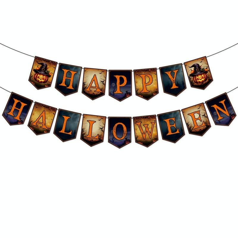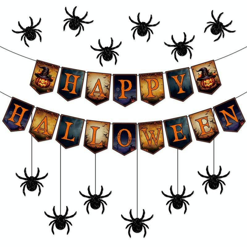 3. The flag is printed with Halloween happy word pattern, which helps to create a festive and happy holiday atmosphere