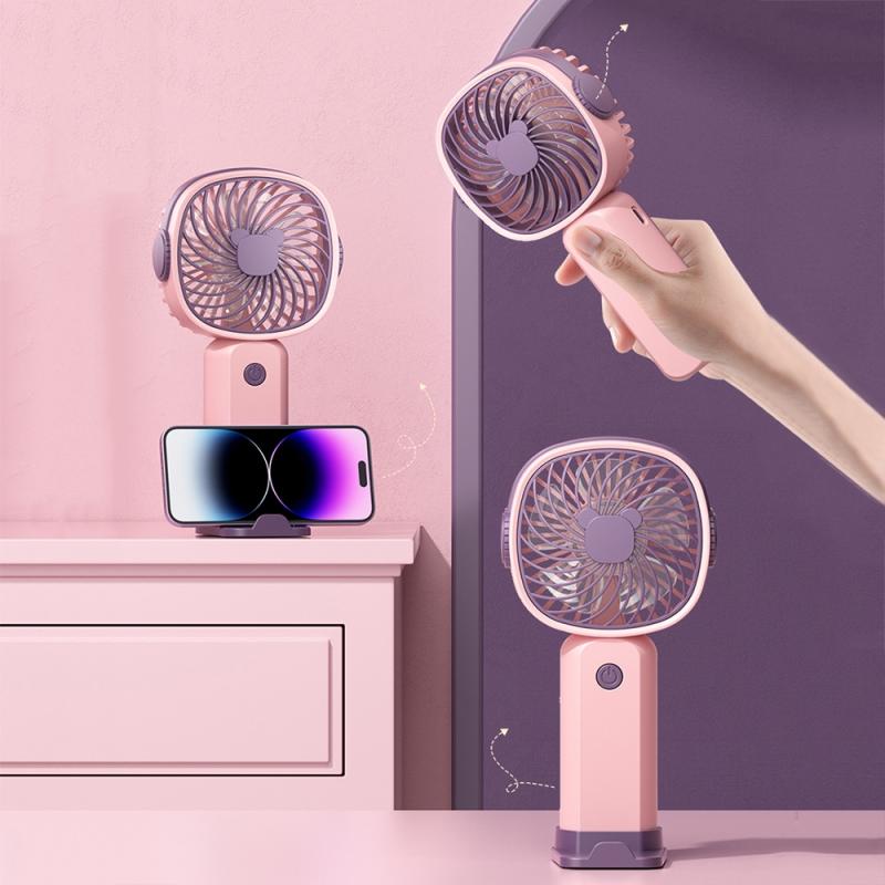 Handheld Portable Mini Multifunctional Fan With Phone Holder Function, Color: Pink Purple no Battery