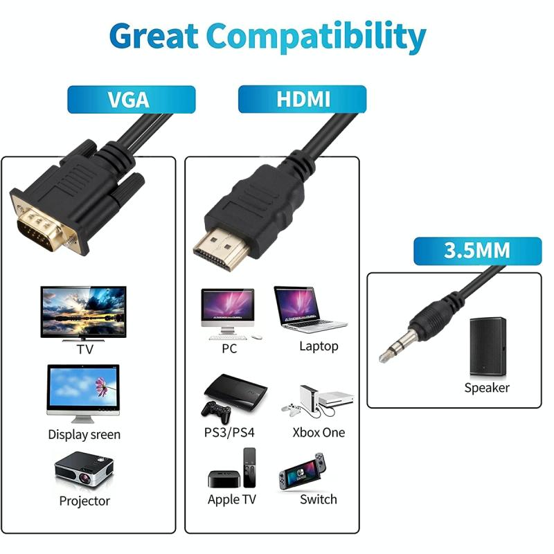 HDMI to VGA Adapter Cable with Audio, Length 1.8m