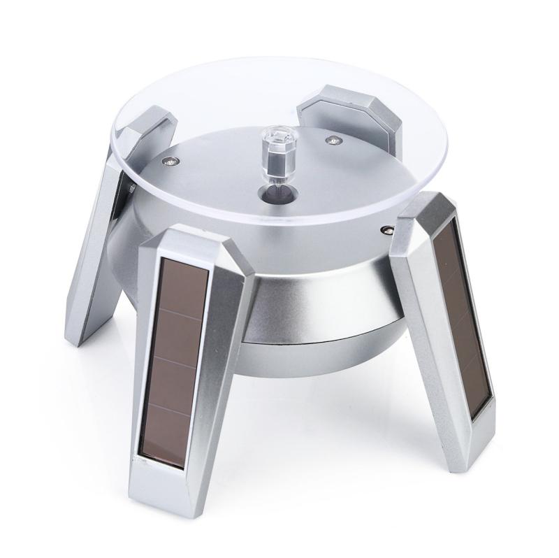 High-Footed UFO Solar 9cm 360 Rotating Display Stand Props Turntable(Silver Blue Light)