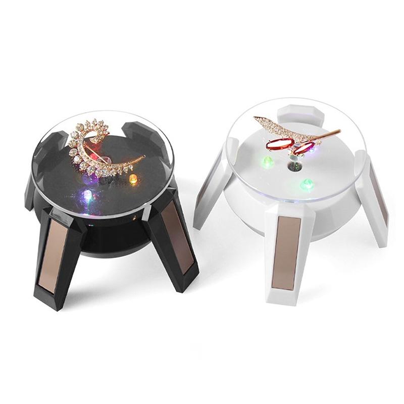 High-Footed UFO Solar 9cm 360 Rotating Display Stand Props Turntable(White Blue Light)
