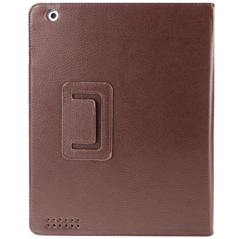 High Quality Litchi Texture Folding Leather with Sleep / Wake-up & Holder Function for iPad 2 / iPad 3 / iPad 4(Coffee)