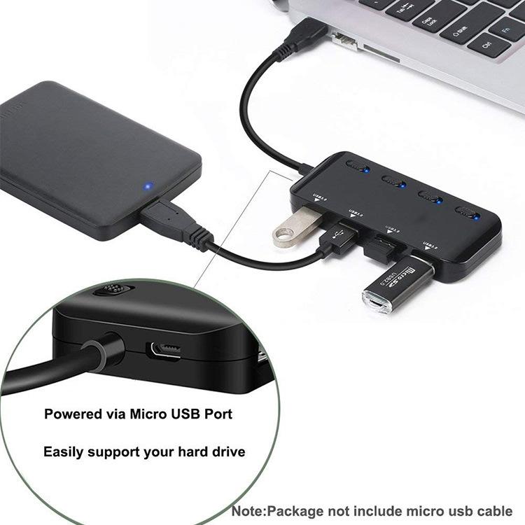 3. Each port of 4-port HUB has one independent switch, saving energy and environmental protection;