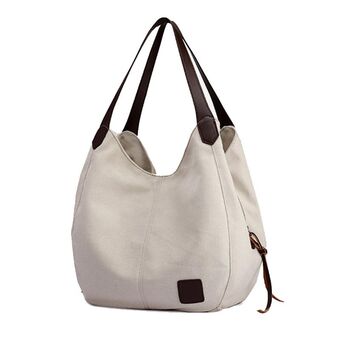 Canvas Bag Simple Wild Lady Retro Art Casual Bag Single Shoulder Bag(Beige)