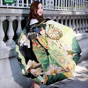 Illustrator Tri-Folding Umbrella Titanium Silver Glue Anti-Ultraviolet Folding Umbrella(Automatic Yan Ran)