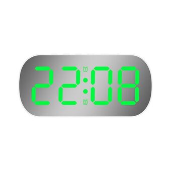 6637 LED Digital Display Temperature Electronic Clock Desktop Mirror Alarm Clock(White Green Light)