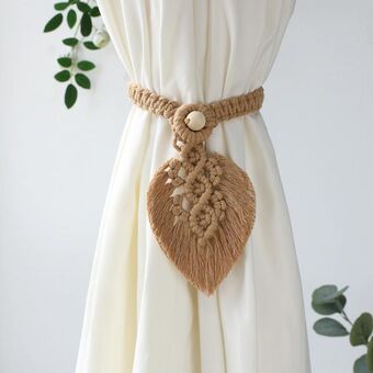 Hand Braided Wooden Bead Curtain Tie Free Buckle Tassel Tie Rope 13x40cm(Coffee)