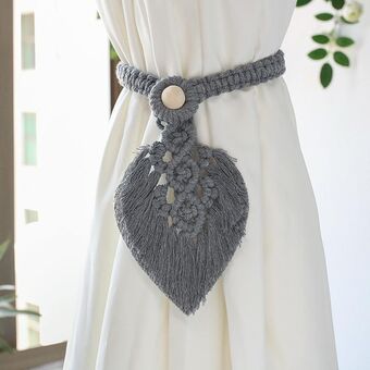 Hand Braided Wooden Bead Curtain Tie Free Buckle Tassel Tie Rope 13x40cm(Grey)