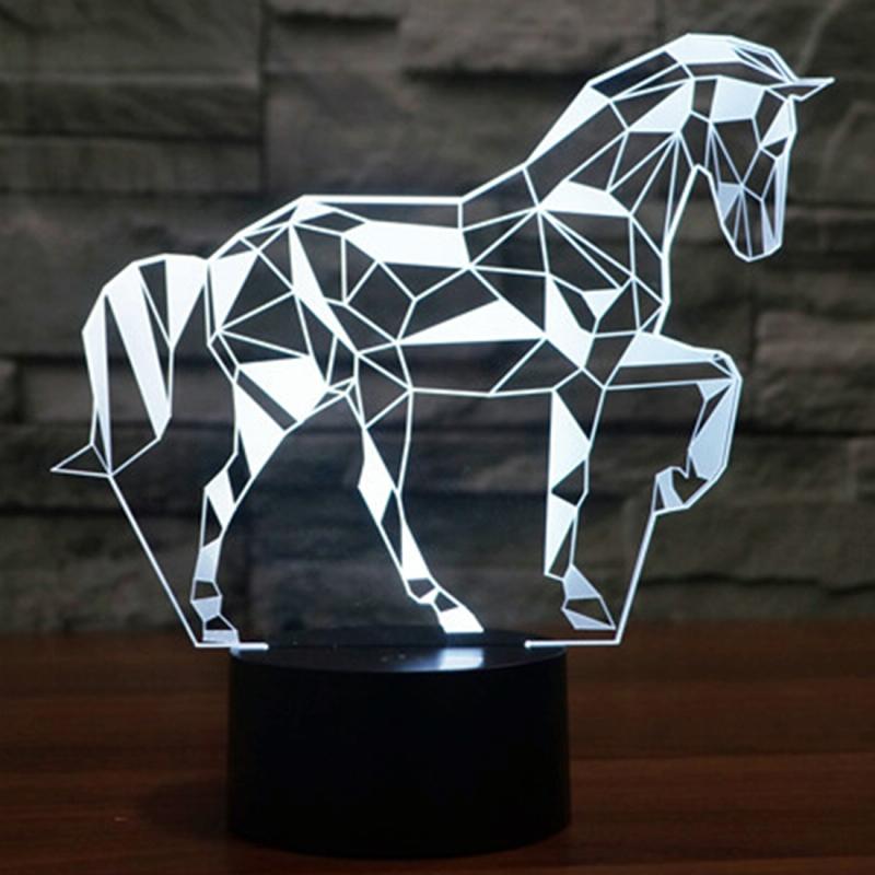 Horse Shape 3D Touch Switch Control LED Light , 7 Color Discoloration Creative Visual Stereo Lamp Desk Lamp Night Light