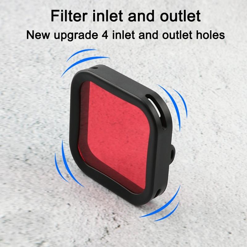 - Red filter for the bluish environment, purple filter for the green environment, and pink filter can restore the color of blue water to obtain a natural and warm color.
