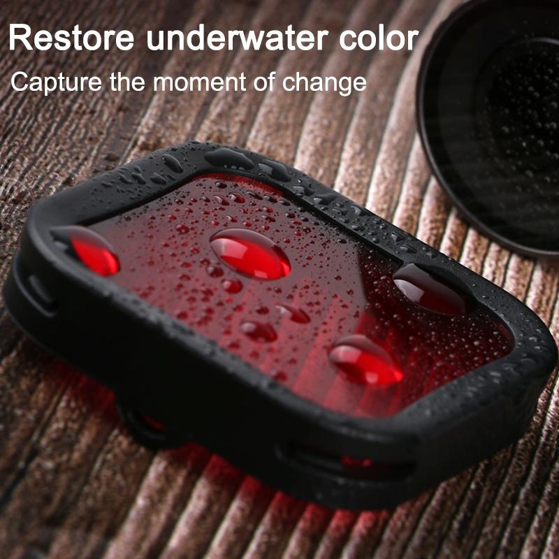 - Red filter: Red filter can be used around noon (sunlight direct water surface) in the water depth 10-20 meters, the main purpose is to reduce the red absorbed by water, effectively improve the blue phenomenon of underwater shooting, restore color balance, prevent shooting the image too blue or too green.