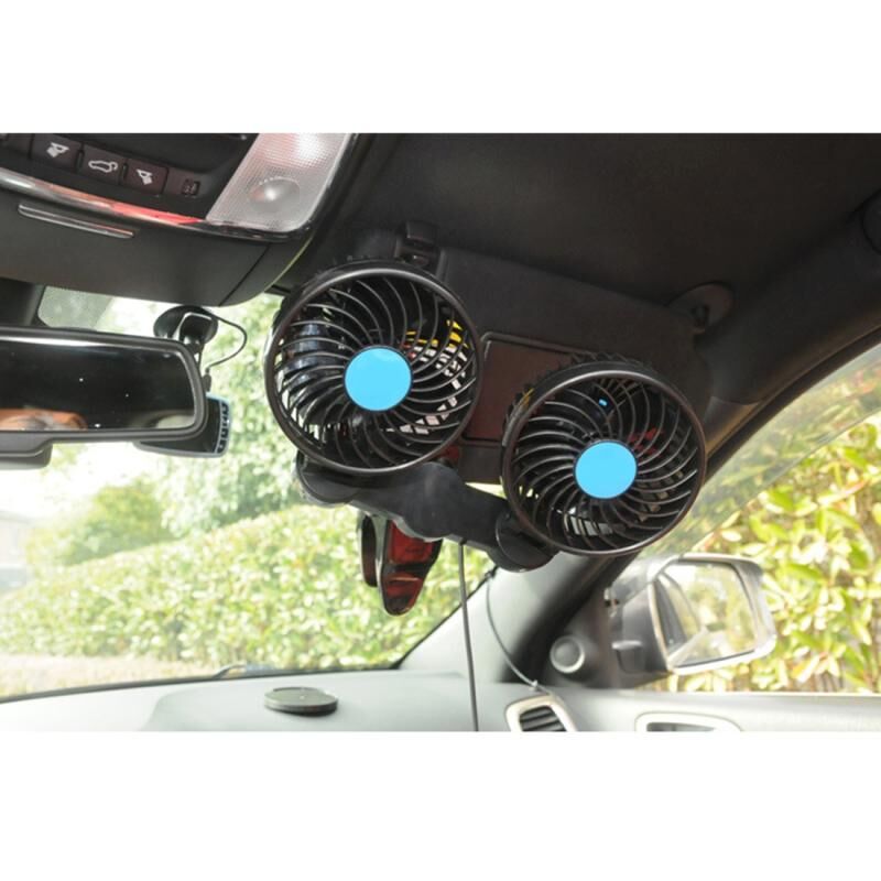 7. The two headed oscillating fan with gear switch and 360 degrees rotation allows the air to be circulated throughout your whole car so no one will be left out