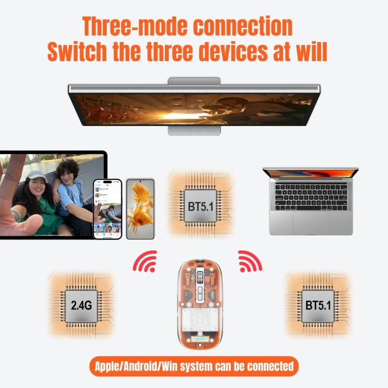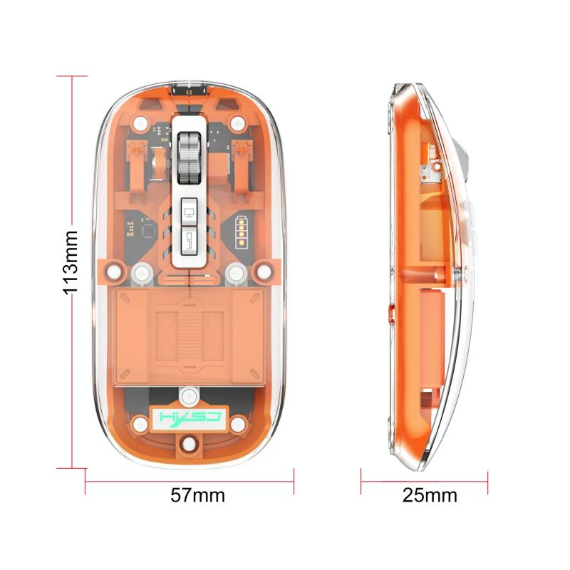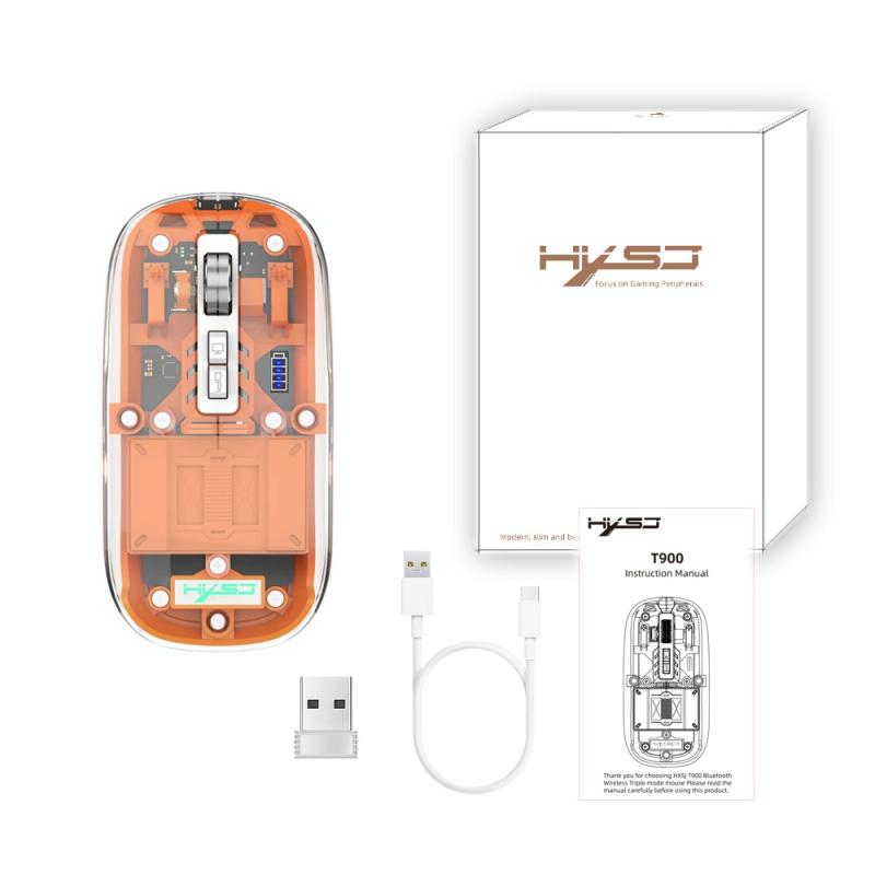 HXSJ T900 Transparent Magnet Three-mode Wireless Gaming Mouse(Orange) (HXSJ)
