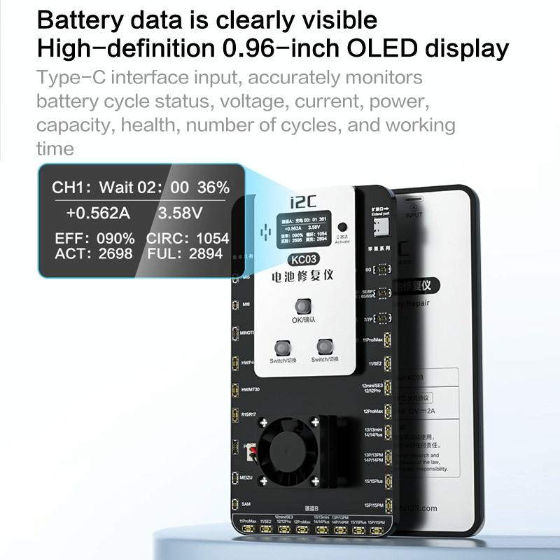 1. KC03 battery repair device supports Apple/Android mobile phone battery repair, dual channel more efficient