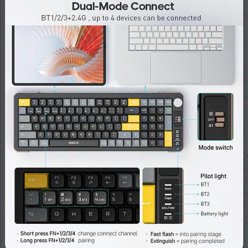 1. Bluetooth three-channel + 2.4GHz, can connect 4 devices