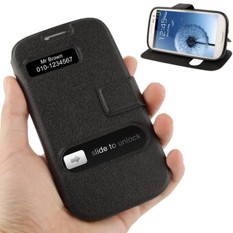 Pebble Texture Leather Case with Call Display ID & Holder for Galaxy S III / i9300(Black)