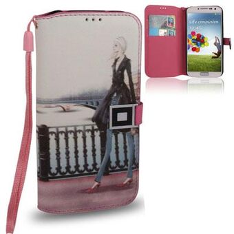 Cartoon Girl Leather Case with Credit Card Slots for Galaxy S IV / i9500