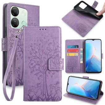 For Infinix Hot 60 Pro 4G Tree & Deer Embossed Leather Phone Case(Purple)