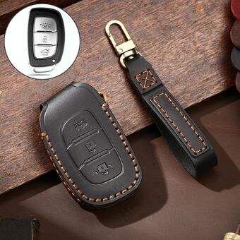 Hallmo Car Cowhide Leather Key Protective Cover Key Case for Hyundai IX35 B Style(Black) (Hallmo)