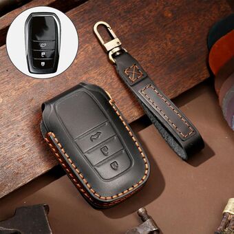 Hallmo Car Cowhide Leather Key Protective Cover Key Case for Toyota Corolla 2017 3-button(Black) (Hallmo)