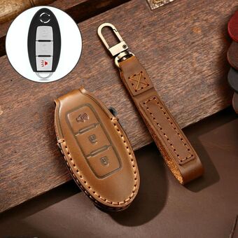 Hallmo Car Cowhide Leather Key Protective Cover Key Case for Nissan Sylphy 3-button Horn(Brown) (Hallmo)