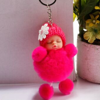 Sleeping Baby Doll Ball Key Chain Car Keyring Holder Bag Pendant Charm Keychain(Magenta)