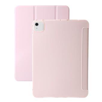 For iPad Air 11 2025 / 2024 3-fold Clear TPU Smart Leather Tablet Case with Pen Slot(Sand Pink)