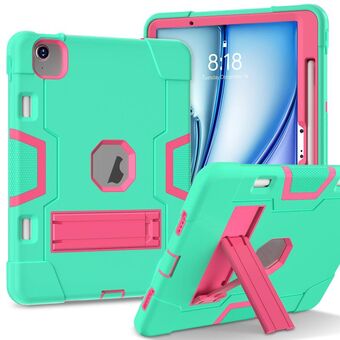 For iPad Air 11 2025 / 2024 Contrast Color Silicone Acrylic PC Tablet Case with Holder(Mint Green Rose Red)